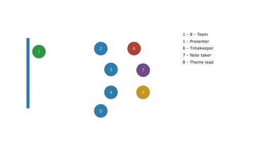 Presenter — Everyone with the exception of the Leader gets a chance to present. When someone presents, there are generally three things that they can do: (1) Present a solution for the problem that the group is trying to solve (2) Clarify the problem, digging into the definition of the problem or (3) Ask questions. (3) is a great way for people to get up to speed quickly and effectively.